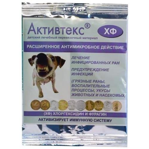 Активтекс ХФ (действующие вещества – хлоргексидин и фурагин). Фурагин и хлоргексидин обладают разными механизмами действия на микробную флору, что увеличивает терапевтический эффект при лечении больных в случае наличия первично инфицированных ран (случайные раны, укусы животных), а также при наличии гнойно-воспалительного процесса. Салфетки АКТИВТЕКС изготовлены из трикотажного полотна, на которое нанесена композиция из биосовместимого гелеобразующего полимера и лекарственных препаратов. Салфетки обладают долговременным антимикробным действием, а так же базовым ранозаживляющим и обезболивающим действием, которые обусловлены свойствами биосовместимого полимера.Показания к применению