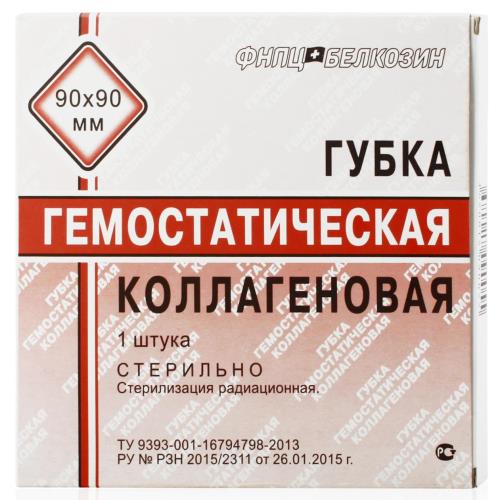 Гемостатическая коллагеновая губка. Коллаген подвергается биодеградации - постепенному рассасыванию в организме в течение 3-6 недель, что позволяет оставлять материал в месте применения без последующего удаления. Продукты биодеградации (лизиса) коллагена стимулируют процессы раневой репарации, ускоряя заживление ран. Содержащиеся в губке борная кислота и нитрофурал оказывают антисептическое и противомикробное действие.