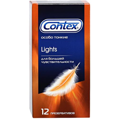 Contex Lights (Лайтс) в силиконовой смазке для большей чувствительности. Бесцветные, прямой формы, с накопителем. Номинальные размеры: длина - 180 мм, ширина - 52 мм. Смазка не разрушает сперматозоиды. Изготовлены из натурального латекса. Проверено электроникой. Только для одноразового использования.