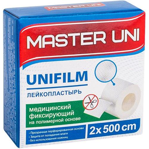 Лейкопластырь Master Uni Unifilm на полимерной основе: защищает ссадины от воздействия факторов внешней среды; оказывает лечебное действие на раневой процесс; фиксирует поражённые части тела.