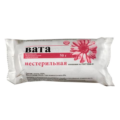 Вата медицинская ГИГИЕНИЧЕСКАЯ - изготавливается из 100% хлопка, без добавок и примесей, предназначена для всевозможных медицинских манипуляций, связанных с обработкой ран, а также для снятия макияжа, ежедневного гигиенического ухода, как для детей, так и для взрослых. Обеспечивает максимальный впитывающий и очищающий эффект. Подходит для любых типов кожи и не имеет противопоказаний.Показания к применению