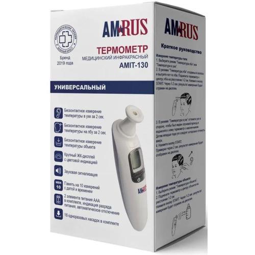 Инфракрасный медицинский термометр AMRUS AMIT-130 предназначен для измерения температуры тела человека (в ухе и на лбу) и предметов бесконтактным способом.