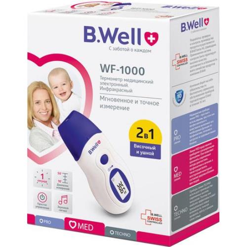 Инфракрасный термометр B.Well WF-1000 измеряет температуру мгновенно. Это надежный помощник для всей семьи, который обладает важными достоинствами. Точный: получайте верные данные о температуре близких Быстрый: измеряйте температуру в одно касание Универсальный: используйте для измерения температуру воздуха в комнате и воды в ванной. Особенно удобен инфракрасный градусник для детей и их родителей. Не каждый малыш согласится измерять температуру несколько минут. С медицинским термометром B.Well узнать температуру можно быстро, просто и в любой ситуации, даже во время сна ребенка.Форма выпуска
