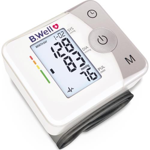 Особенности: • Технология Intellect Active Обеспечивает быстрое и бережное измерение. Тонометр проводит измерение на этапе нагнетания воздуха в манжету, подстраивается под каждого пользователя, определяя индивидуальный уровень накачки манжеты. Алгоритм Intellect Active позволяет провести измерение не только точно и быстро, но максимально комфортно. • Подсветка дисплея Подсветка дисплея для удобного измерения при любом освещении • Дневник измерений Полноценный контроль давления: память на 30 измерений с датой и временем • Среднее трех измерений Согласно рекомендациям врачей: функция расчета среднего значения трех измерений • Цветная шкала уровня давления Подскажет уровень измеренного давления по классификации Европейского общества гипертонии (ESH) • Индикатор аритмии Позволяет выявить нарушения сердечного ритма на ранней стадии • Удобный футляр для хранения в комплекте • Индикатор разряда батареи • Автоматическое отключение Автоматический тонометр B.Well MED-57 - современный тонометр на запястье с расширенными функциями. Инновационная технология Intellect Active позволит провести измерение точно, быстро и бережно. Запястный тонометр MED-57 проводит измерение на этапе нагнетания воздуха в манжету, подстраивается под каждого пользователя, определяя индивидуальный уровень накачки манжеты. Индикатор аритмии поможет выявить нарушение сердечного ритма на ранней стадии. Компактный MED-57 удобно взять с собой, а подсветка дисплея позволит провести измерение при любом освещении. Звуковые сигналы можно отключить, чтобы не беспокоить близких в ночное время. В комплекте удобный пластиковый футляр, который защитит прибор в дороге и при хранении. Функция расчета среднего значения трех измерений позволит получить точный результат измерения согласно рекомендациям врачей. Достаточно провести три измерения, а прибор сам рассчитает среднее значение систолического, диастолического давления и частоты пульса. А цветная шкала - подсказка уровня давления позволит сразу оценить полученный результат измерения. С тонометром MED-57 легко контролировать давление: прибор имеет память на 30 измерений с датой и временем. Это настоящий «Дневник измерений», который всегда под рукой. Кроме того, MED-57 имеет «Гостевой режим измерения»: в этом режиме тонометр не сохраняет в памяти результат измерения. Вы можете дать другому лицу измерить давление MED-57, и при этом в памяти останутся только Ваши результаты измерений. Увеличенная манжета тонометра MED-57 для обхвата запястья 13,5-21,5 см подойдет большинству пользователей. Тонометр на запястье MED-57 - точность, комфорт и полноценный контроль давления в компактном корпусе.Показания к применению