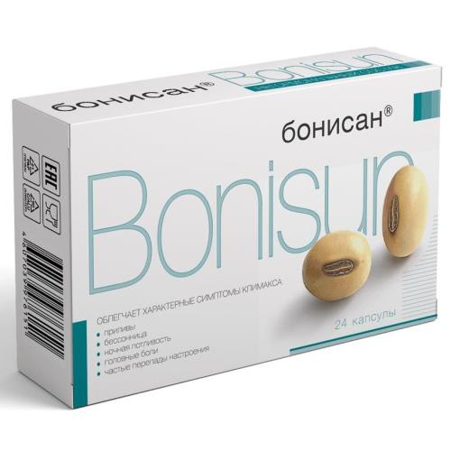 Капсулы «Бонисан» рекомендуются в качестве биологически активной добавки к пище - дополнительного источника изофлавонов. Капсулы облегчают характерные симптомы климакса (приливы, бессонница, ночная потливость, головные боли и частые перепады настроения).Противопоказания
