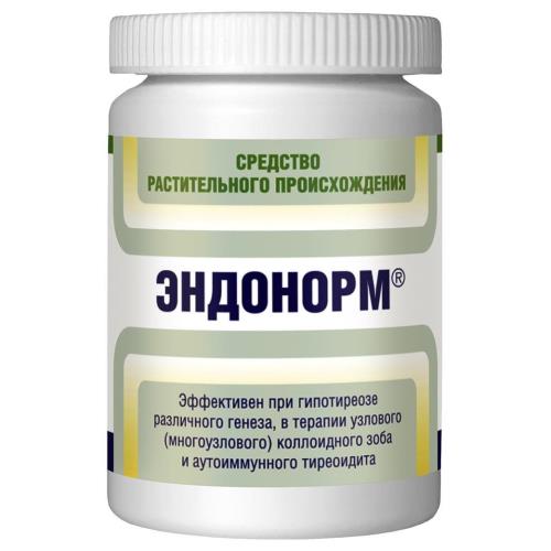 Эндонорм® может оказывать благоприятное действие при гипотиреозе различного генеза, аутоиммунном тиреоидите, эутиреоидном зобе (диффузном, узловом, многоузловом), эндемическом зобе (диффузном, узловом, многоузловом).
