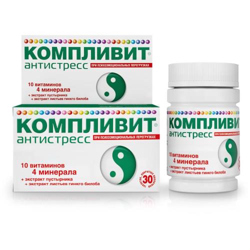 КОМПЛИВИТ® АНТИСТРЕСС рекомендуется в качестве биологически активной добавки к пище - дополнительного источника витаминов А, С, Е, группы В (В1, В2, В6, В12, фолиевой кислоты, кальция пантотената, никотинамида), минеральных элементов (меди, цинка, селена), источника флавоногликозидов.
