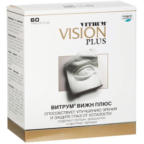 Фосфат кальция 2-замещенный, лютеин, витамин С (аскорбиновая кислота),экстракт черники, оболочка таблетки (гидроксипропилметилцеллюлоза Е464, диоксид титана Е171, полидекстроза Е1200, тальк Е553iii, мальтодекстрин, среднецепочечные триглицериды), рибофлавин Е101i), стеариновая кислота Е570, микрокристаллическая целлюлоза Е 460, витамин Е (ацетат), рутин, кремния диоксид Е 551, кроскармеллоза натрия Е468, зеаксантин, магния стеарат Е470, бета-каротин, оксид цинка, селенметионин, витамин В2 (рибофлавин).Лекарственная форма